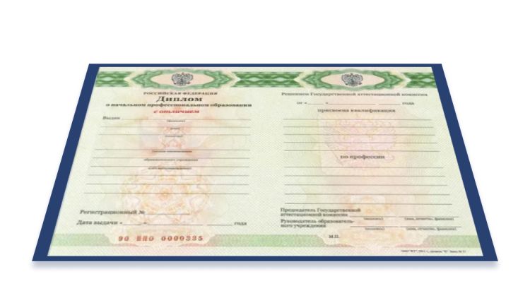 Диплом училища, доступные с годами выдачи с 2014 по 2025. Используем оригинальные бланки ГОЗНАК с подписями и печатями, полная комплектация включает корочку, бланк диплома и приложение.